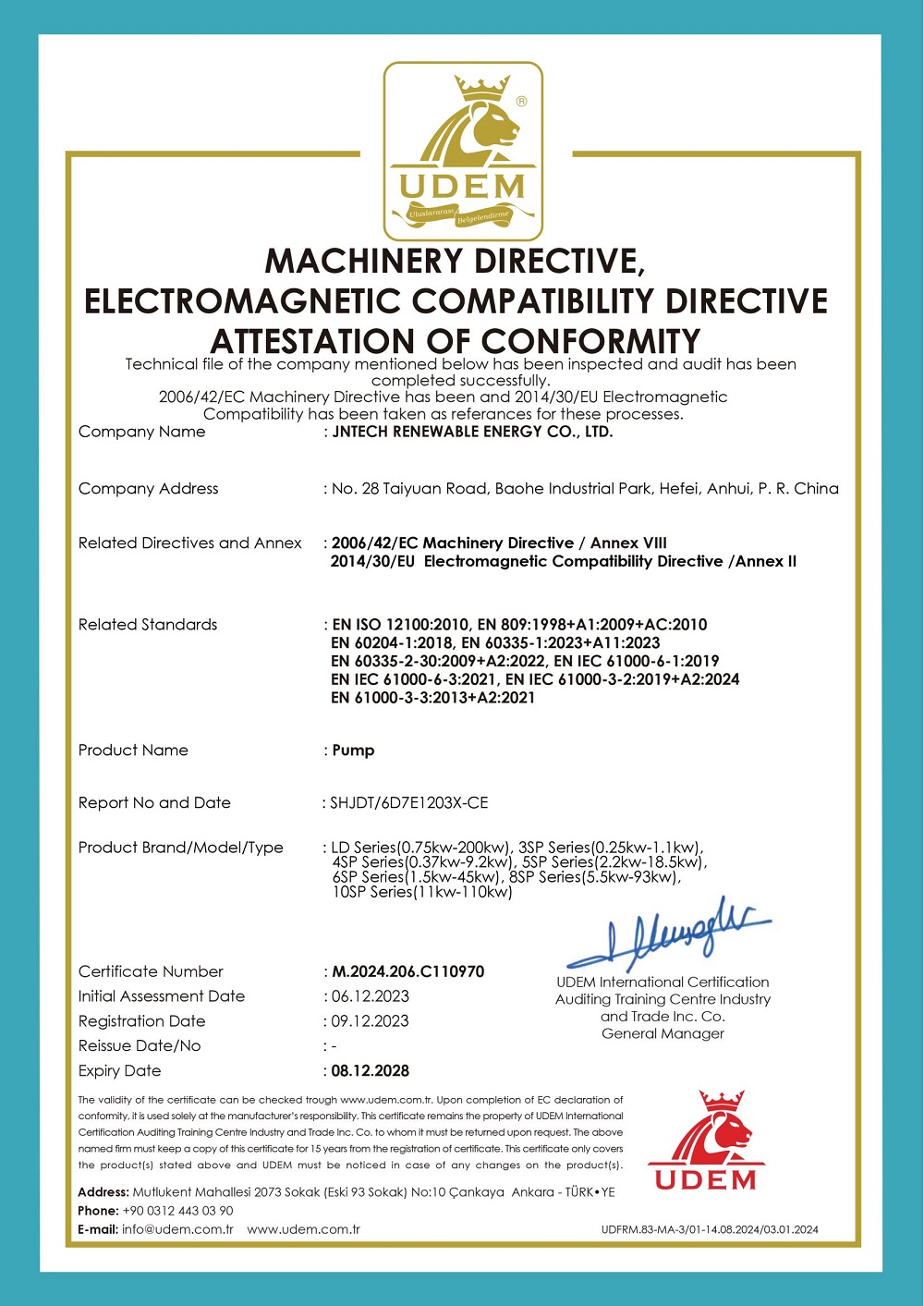 Certificado de bomba de água CA